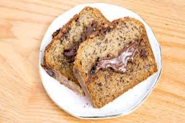 The top of this hazelnut-adorned banana bread is a sneak peek: There's a layer of creamy chocolate-hazelnut spread in the center too.