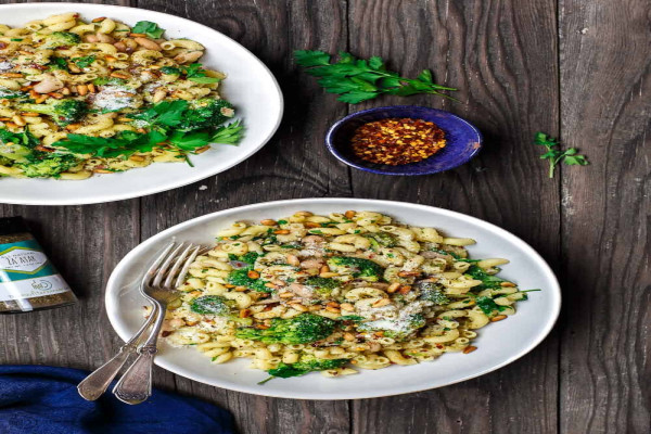 A rich and comforting dish. Pasta is tossed in a creamy sauce and often includes vegetable florets like broccoli or cauliflower, making it a satisfying vegetarian option.